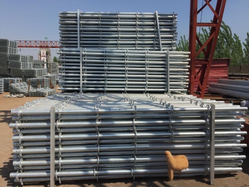 盤扣式腳手架的尺寸規(guī)格多樣,主要包括立桿直徑、橫桿長度、步距(即上下兩層橫桿之間的距離)以及盤扣間距等。常見的立桿直徑有48mm、60mm等,這些直徑的鋼管經(jīng)過處理,具有較高的承載能力和穩(wěn)定性。橫桿長度則根據(jù)施工需要而定,通常有0.6m、0.9m、1.2m、1.5m等多種規(guī)格可選。步距一般標(biāo)準(zhǔn)化為1.5m或1.8m,以便適應(yīng)不同層高和作業(yè)需求。